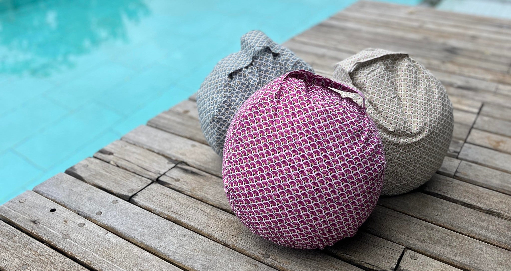 Tous nos accessoires, coussins de méditation, repose yeux, tapis, sangles et bolsters, sont faits en conscience.